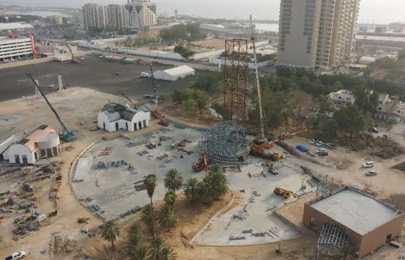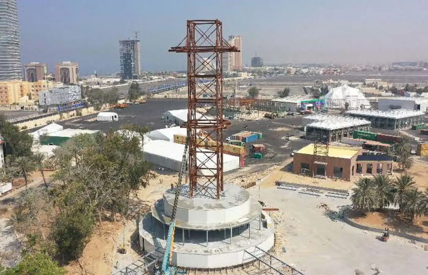 A waterfall with a height of 50 m, with concrete works for all bridges and the lake around the waterfall with insulation.